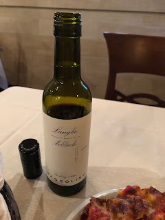Derefter spiste jeg frokost, hvor jeg fik lidt ravioli, som smagte himmelsk. Ikke nogen stor portion, men passende for mig, og jeg drak selvfølgelig et glas Barolo dertil.
